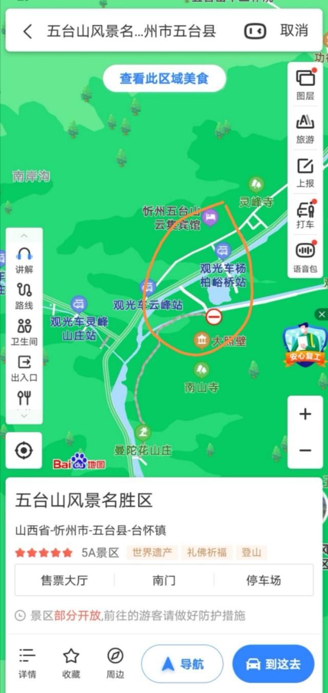 该区域已经靠近核心景区殊像寺,开车也就不到两公里,而且在景区检票区域内,第二天早饭后可直接进行游览,如果住在验票区域外,第二天还得买票,再开车到殊像寺最少半个小时,太耽误时间。