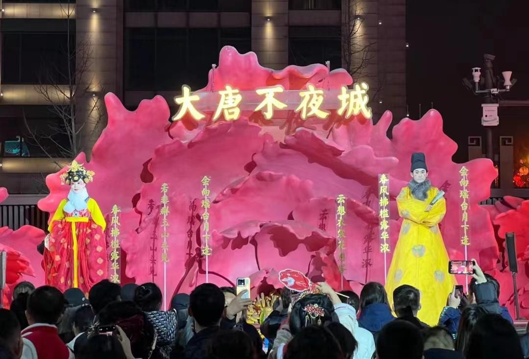 大唐不夜城过去一个节目都看不到,三月去的节目,开始就被人流挤着往前走根本看不到