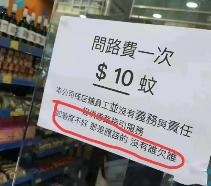 他们在门上贴了一张纸,上面写着:问路要钱,不问路也要钱,不给钱就走人,不走人就打人。