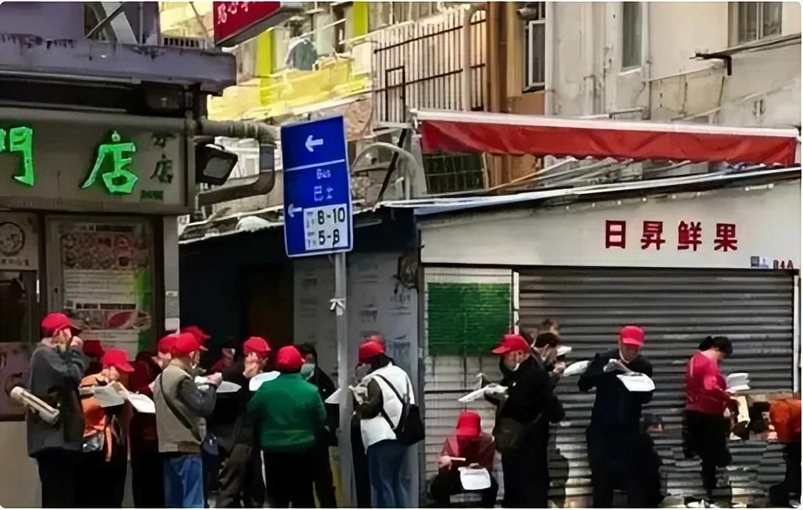 因为我们吃不完的东西,就拿出来蹲着吃,一下子就堵住了路,影响了香港人的出行。