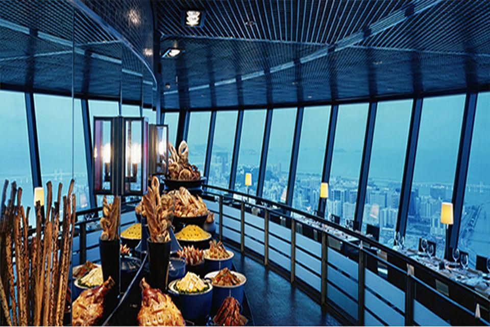 澳门旅游塔还提供一系列的娱乐项目。其中包括空中漫步,游客可以在233米高的塔顶外围的露天钢架上漫步,感受刺激和冒险的快感。此外,还有蹦极跳和高飞跳等项目,让游客体验高空的刺激和挑战。在塔身60层的360°旋转餐厅内,游客可以一边品尝美食,一边欣赏澳门的全景。此外,澳门旅游塔还有其他餐厅提供各种美食选择,包括中餐和西餐。