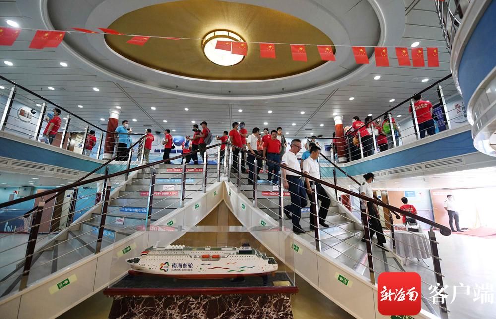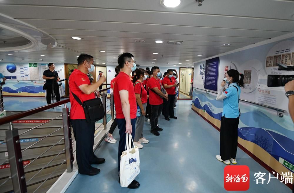 6月24日,来自三亚各单位的优秀党员、优秀党务工作者、优秀教师和媒体代表在南海博物馆海上流动博物馆参观。记者 沙晓峰 摄