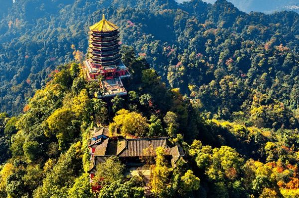 早上从成都出发,乘坐公共汽车或火车前往峨眉山。峨眉山是中国四大佛教名山之一,也是中国著名的旅游胜地。在峨眉山上,你可以欣赏到壮丽的山峰和美丽的风景。你可以在金顶寺欣赏日出和日落,或者在长老峰徒步旅行。