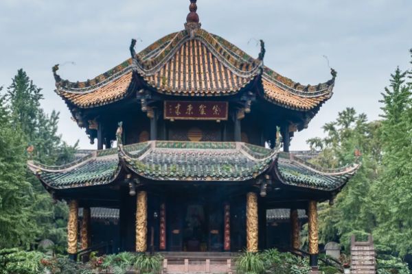 成都武侯祠是纪念刘备、诸葛亮等蜀汉英雄人物庙宇所在,它肇始于蜀汉昭烈帝章武元年(221年)刘备惠陵修建时,在修建惠陵的同时也修建了汉昭烈庙。