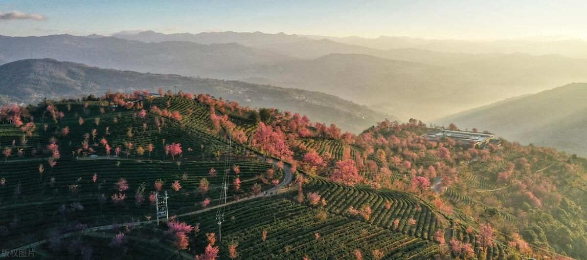 云南大理州南涧县无量山,原本是一处茶园,偶然生长了几株樱花,随后繁育了大量樱花。这些樱花树不仅为夏日的茶树带来荫凉,更为游人带来冬日的一处美景。冬樱花花期一般是11月下旬至12月中旬盛开,25天左右。