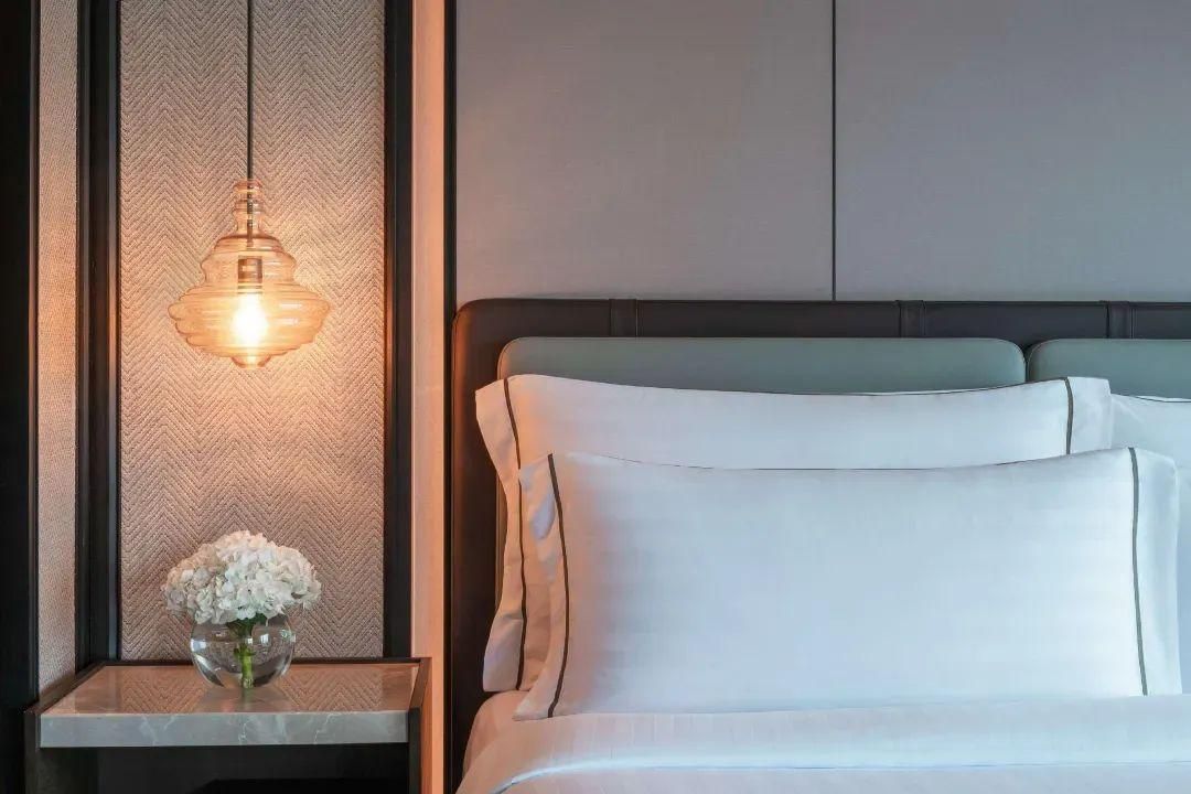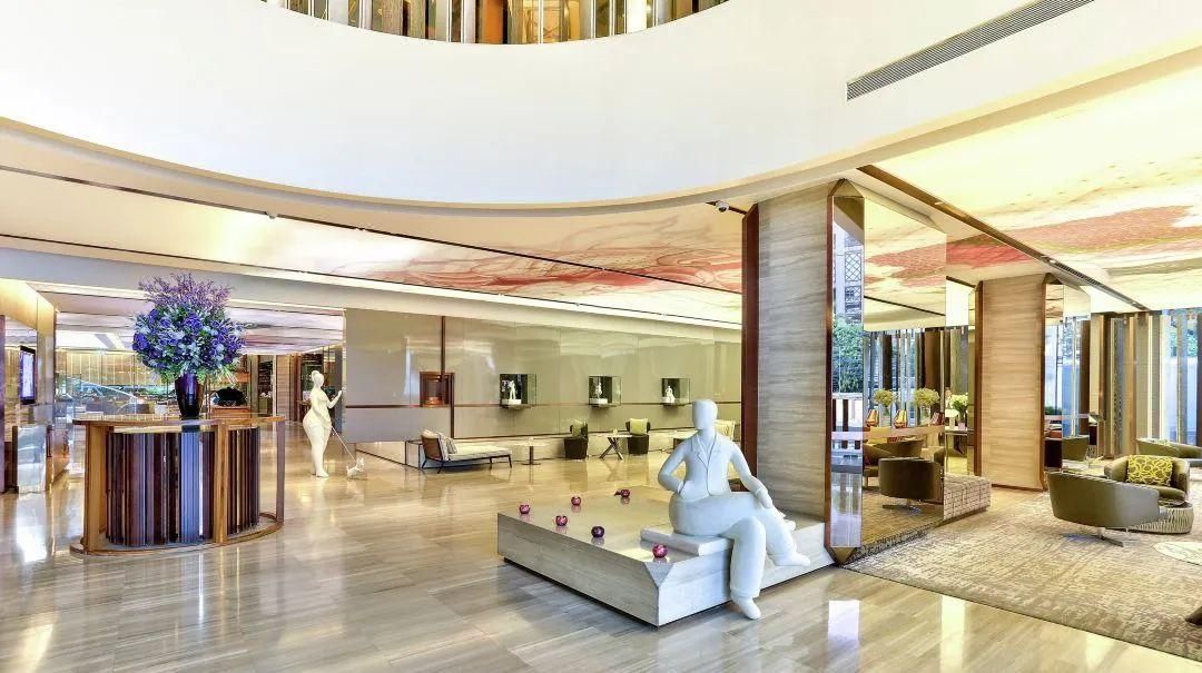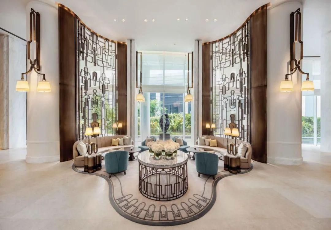 André Fu的设计让酒店从一楼开始就弥漫着大男子气场,大理石、金属和大量金属线条的开阔空间,立柱、象牙色以及黄铜的使用,为户外的燥热提供设计型降温,其实和他设计的香港瑞吉酒店还是有很多相似之处的。