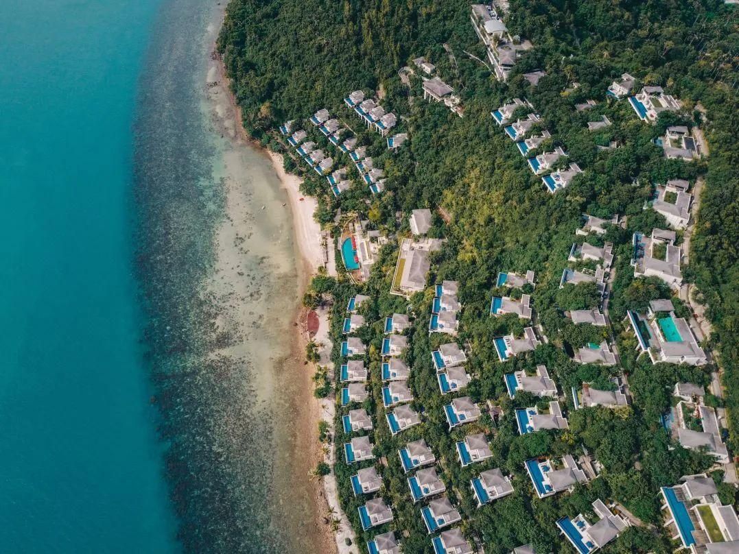 酒店是当之无愧的康莱德品牌旗舰店,位于一处面朝泰国湾晶莹海水的山坡,掩映在 25 英亩的葱郁树林之中,包含81栋豪华别墅,且都拥有私人泳池和露台,从每一栋豪华别墅均可欣赏全景或局部海景,以及壮丽的落日余晖。
