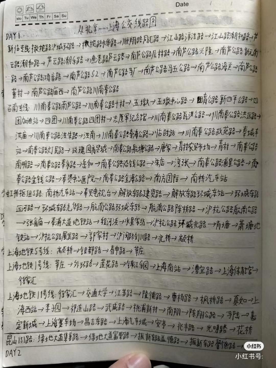 他有一本专门做旅行计划的本子,将近五六厘米厚,里面密密麻麻记录了他拟定的公交路线,现在已经用了快一半。