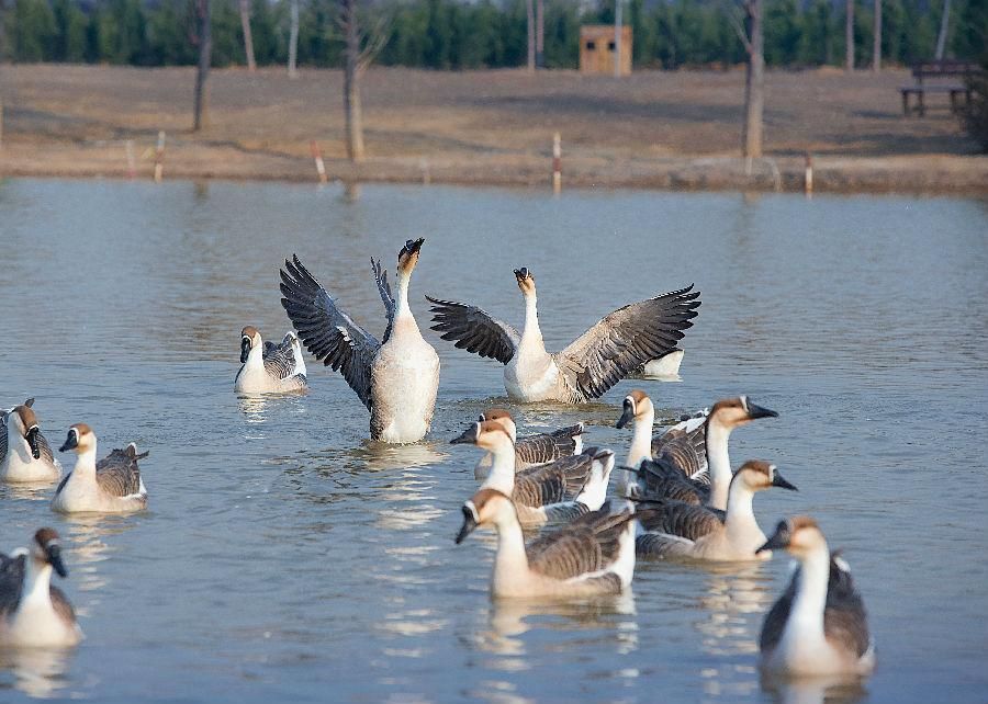 候鸟放飞岛占地10万平方米,有白天鹅、丹顶鹤等10余种国家一、二级保护鸟类,也是迄今为止国内最大的鸟类放飞表演园,一次可放飞5000余只候鸟。