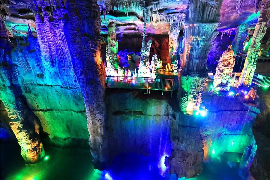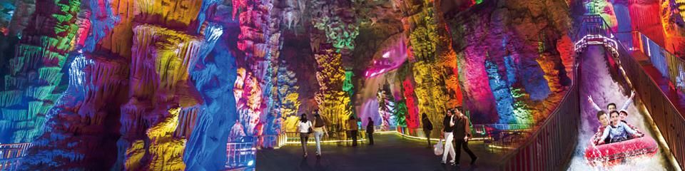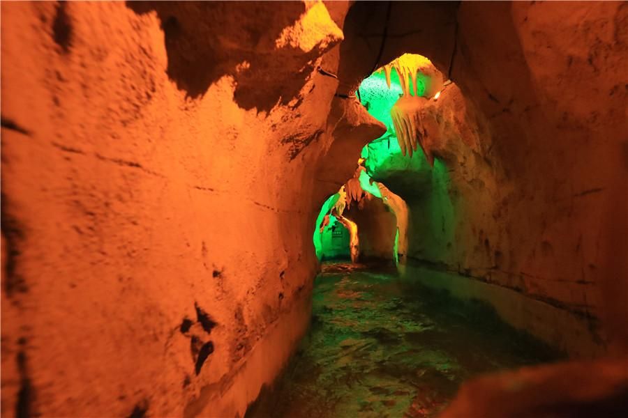 地下大裂谷是泰山和徂徕山两座山脉的断裂带,长1300多米,与地下溶洞紧密相连,整体观光长度达6000余米,洞内遍布钟乳石、石花、石柱、石笋、石幔、石瀑等,形成了一幅幅神奇与美妙的画卷,漫步其中,不由得令人击节赞叹造物主的神奇与大自然的鬼斧神工。依托洞内丰富的地下水资源,景区打造了3000米地下暗河漂流,水道蜿蜒曲折,惊险刺激,是目前亚洲最长地下漂流项目。穿戴好度假区贴心提供的防水装备后,游客们可随机组合来组队登船,自暗河漂流码头开船,全程20分钟的漂流旅程在保证安全的前提下可以使所有朋友们体验到速度与激情,同时饱览地下溶洞的瑰丽风光。