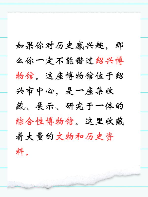 如果你对历史感兴趣,那么你一定不能错过绍兴博物馆。这座博物馆位于绍兴市中心,是一座集收藏、展示、研究于一体的综合性博物馆。这里收藏着大量的文物和历史资料,让你更加深入地了解绍兴的历史和文化。