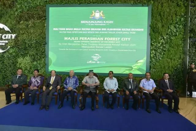▲马来西亚柔佛州苏丹依布拉欣(前排右一)宣布森林城市面向全球正式开放。