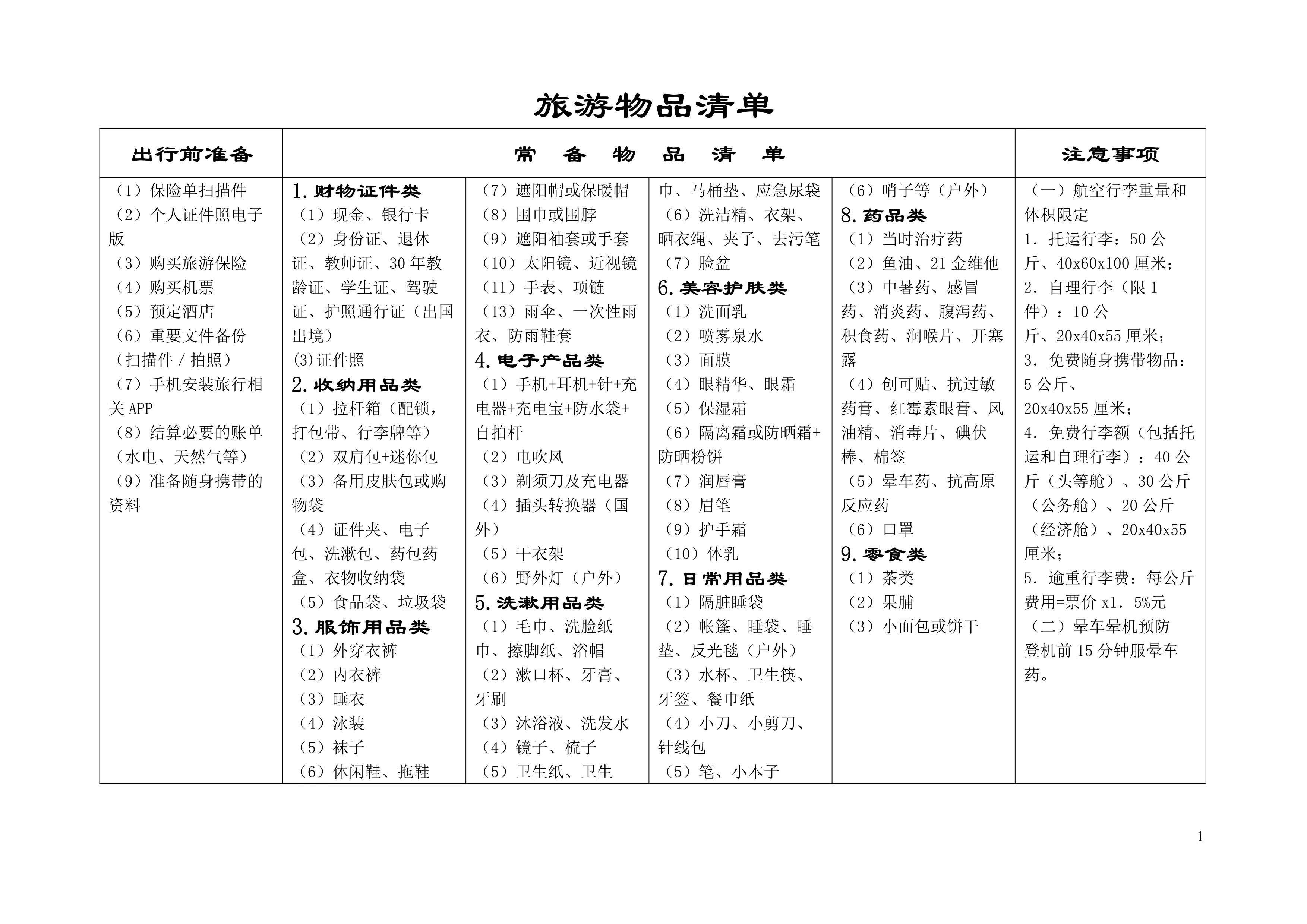 我的《旅游物品清单》,如果你需要参考,可以关注、收藏、转发,如果这张清单能帮助到你,我会非常高兴的。