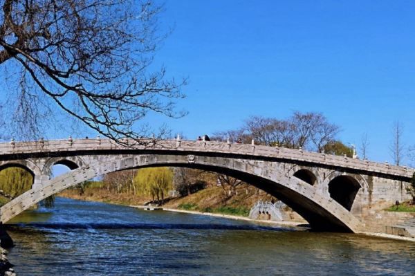 5、沧州赵州桥:我国古代石拱桥的杰出代表是举世闻名的河北省赵县的赵州桥为李春所创建,是一座空腹式的圆弧形石拱桥,在拱圈两肩各设有二个跨度不等的腹拱,这样既能减轻桥身自重,又便于排洪、增加美观,赵州桥的设计构思和工艺的精巧。赵州桥的雕刻艺术,包括栏板、望柱和锁口石等,其上狮象龙兽形态逼真,琢工的精致秀丽。