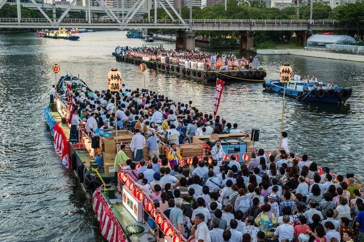 每年7月24日、25日会在大阪天满宫举办大阪最大规模的祭典【天神祭】。25日则会举行【陆渡御】(市民3千多人身穿传统服饰、手拿神具,与神轿一同缓步前行的仪式)与【船渡御】(大川(旧淀川)上有许多船只交会的仪式)活动。此外,7月25日还会举办【天神祭奉纳烟火大会】,5000多发的烟火将大阪的夜空妆点得美不胜收,连日的祭典与烟火吸引了众多游客前来。