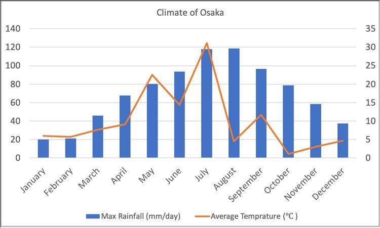 四周有大阪湾与群山环绕,属瀬户内海气候,一年四季气候温暖,但都市地带因全球暖化与都市化伴随而来的热岛效应,导致气温逐渐上升,晚间气温也难以下降。事先确认气候,并考虑季节、地点与携带物品,尽情享受舒适的大阪之旅吧!