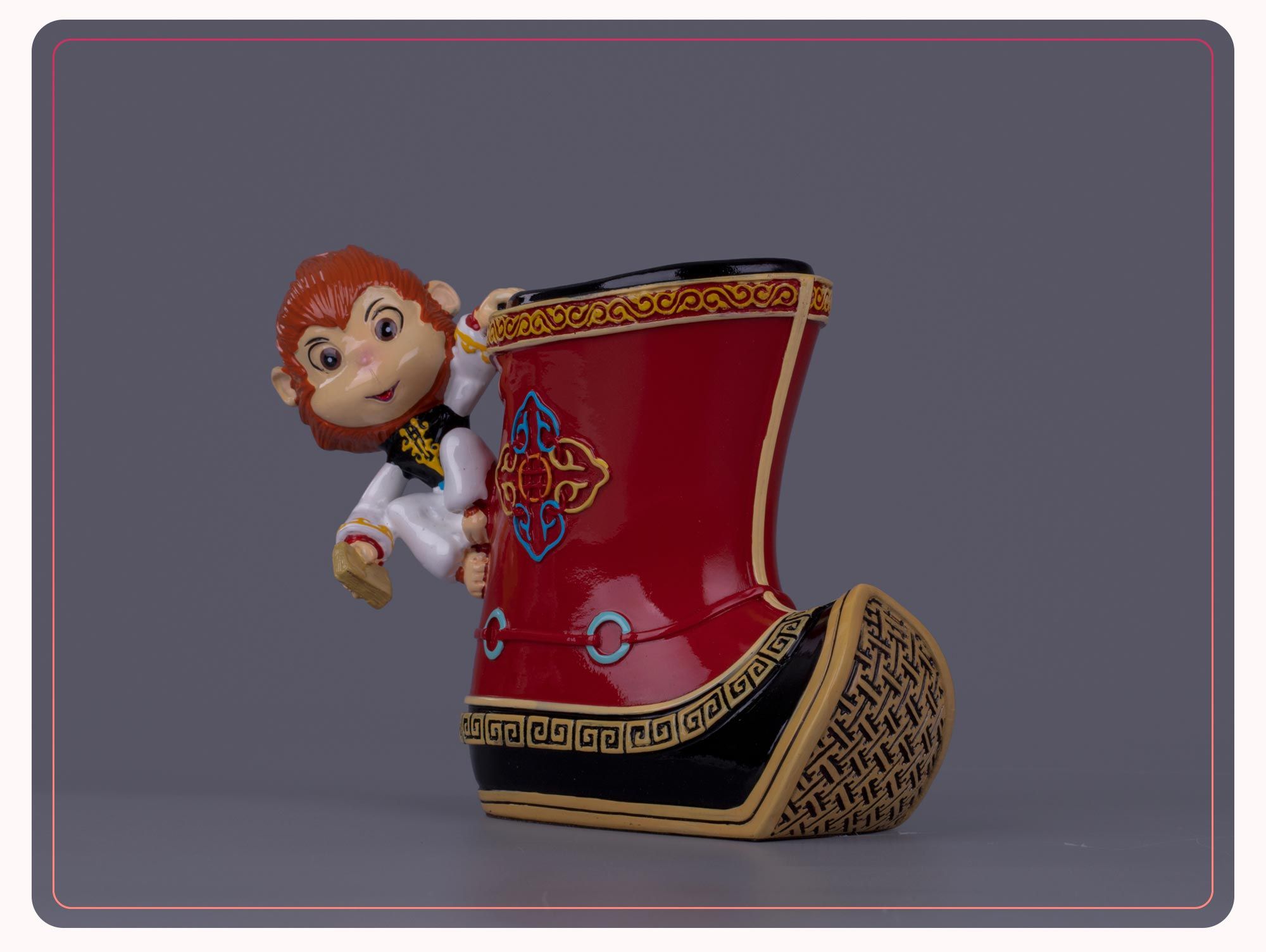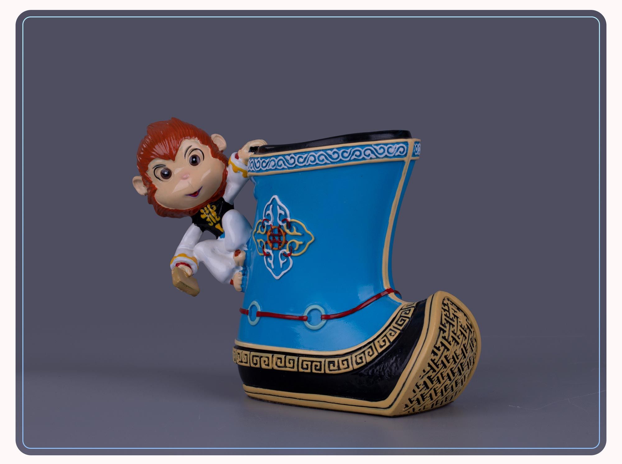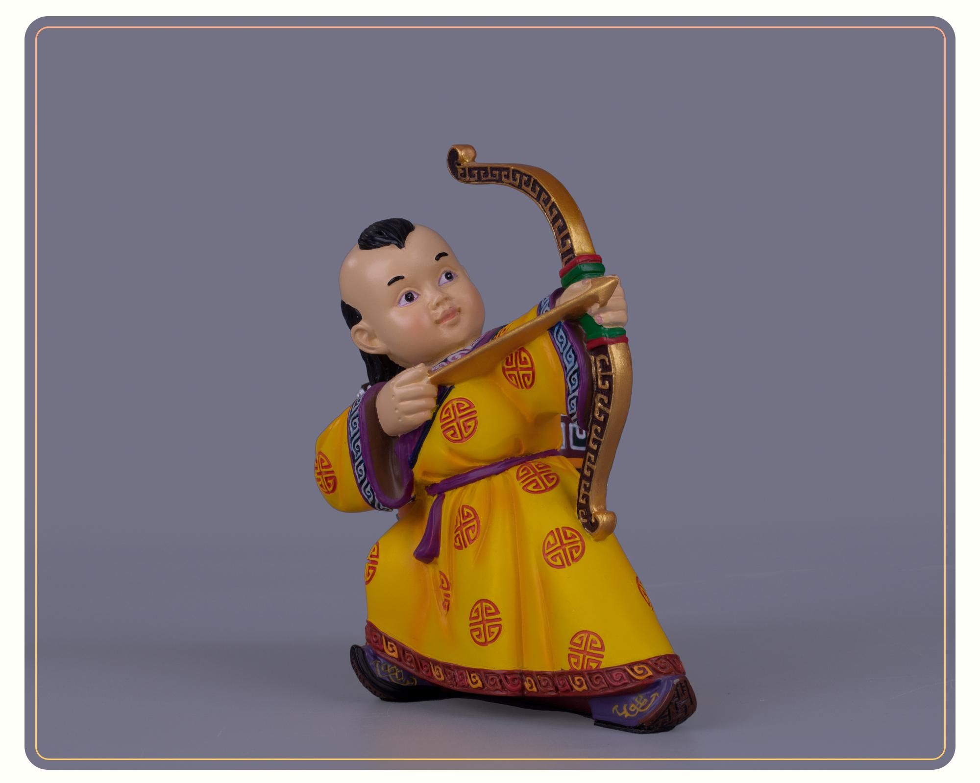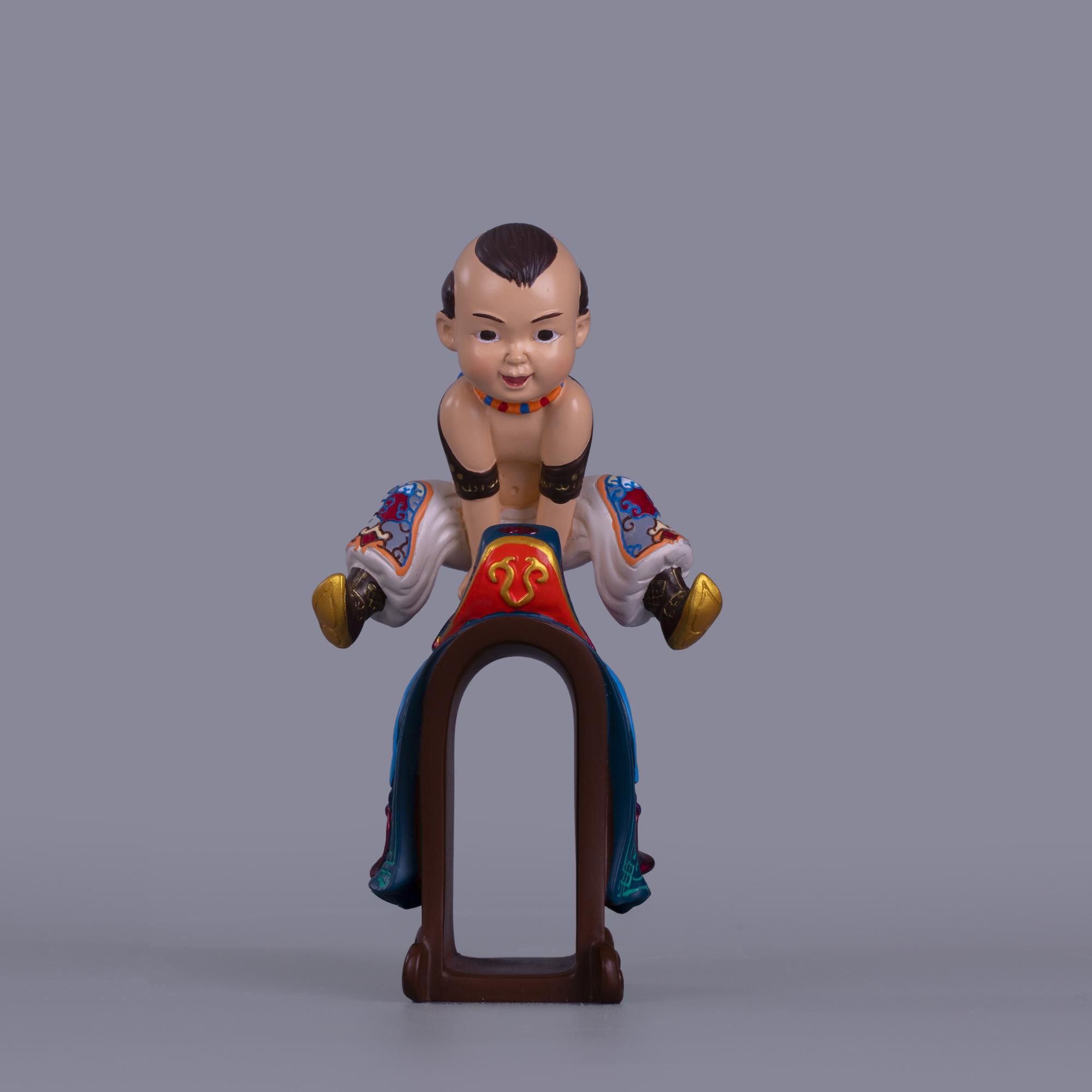 以旅游纪念品冷瓷蒙古娃娃桌面小摆件为例,有用草原身着蒙古服饰的孩童为原型,做的桌面摆件、笔筒,有用蒙古那达慕“男儿三艺”为设计原型系列的作品,让游客都爱不释手。这些作品在不失民族文化和趣味生动的同时,注入新的设计元素与实用功能,备受游客们的喜爱。
