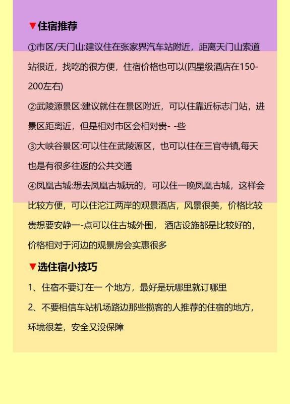 ①市区/天门山:建议住在张家界汽车站附近,距离天门山索道站很近,找吃的很方便,住宿价格也可以(四星级酒店在150-200左右)