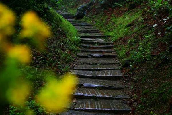 第二处是仙寓山古徽道,是一条全部用青石板铺就的古道,全长7.5公里,在这条古徽道当中至今保留下来了很多的古建筑,古长城,古墓葬,古亭,石碑,石刻,石雕,以及古战场,寺庙庵堂遗迹,走在这条古道上,有种身入仙境的感觉。春天的时候从这条古道上走一遭感觉还是很不错的,在古道两旁很多的小草丛生,也有山花相伴左右。