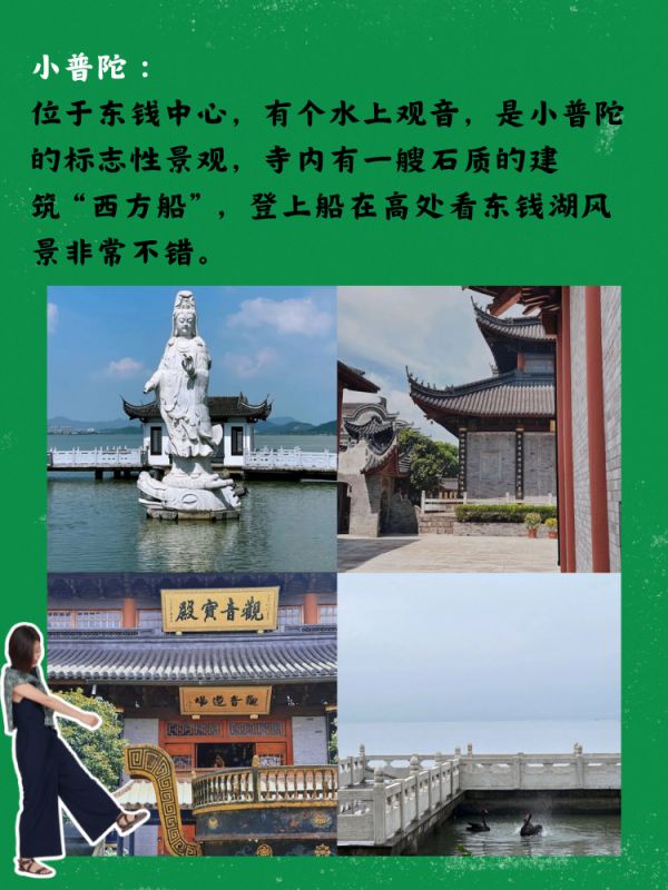 位于东钱中心,有个水上观音,是小普陀的标志性景观,寺内有一艘石质的建筑“西方船”,登上船在高处看东钱湖风景非常不错。