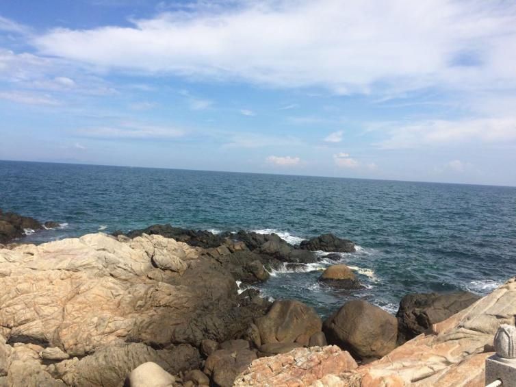 观日岩:观日岩位于蜈支洲岛的东南悬崖处。站在岩上凭海临风,俯瞰全岛,辽阔的南海尽收眼底。悬崖下面,怪石嶙峋。 风平浪静之时,乘快艇环岛游,石景千奇百怪,观日岩像一尊天然大石佛,面向大海,日夜修炼。观日岩又像一只巨龟缓缓爬向大海,期望回到自己的故乡,故又称金龟探海。新世纪的第一缕曙光从这里升起,绯红的太阳从海面上徐徐上升,形成一绝佳的海上观日点。每逢风起,激浪拍石,这一带浪峰高高达十几米。浪峰过后,海面上一片雪白的浪花,那才叫"卷起千堆雪"呢。