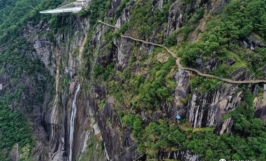 心形悬崖栈道位于岱仙瀑布两侧,从远处看,两边的栈道整体呈一个心形,蜿蜒盘桓在崖壁上,心形栈道全程3000米,高差314米,是国内难得一见的心形立体环瀑栈道。