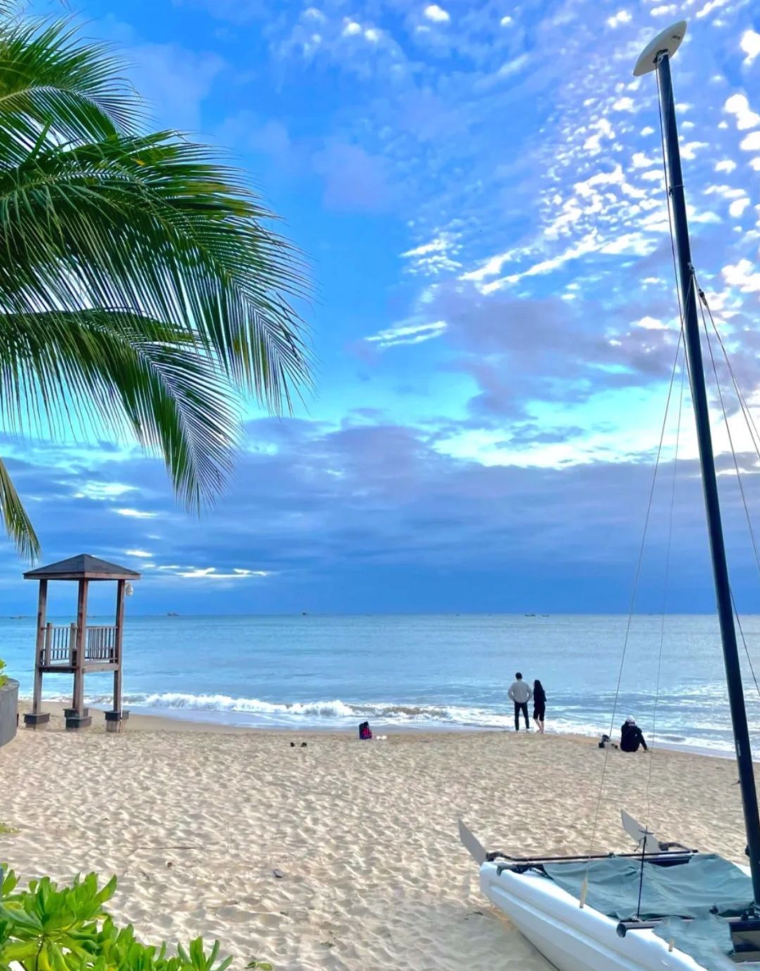 在三亚湾,你可以尽情享受阳光和海风带来的宁静和舒适。又或者,你可以选择加入沙滩足球,沙滩排球等娱乐活动,感受海滩带来的活力和乐趣。