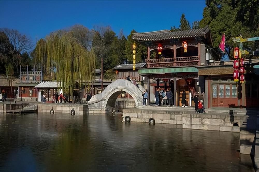 苏州街是颐和园内的一条仿江南水镇而建的街道,也被称为“买卖街”。它位于后湖两岸,原有各种不同类型的店铺,如玉器古玩店、绸缎店、点心铺、茶楼、金银首饰楼等。这些店铺的店员都是太监和宫女,他们会在皇帝游行时开始“营业”。然而,在咸丰十年(1860年),这些店铺遭到列强的焚毁,直到1986年才重建。