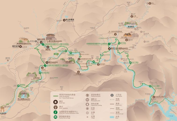 皖浙一号公路依托新安江沿岸的自然风光,让我们能够亲身体验车在画中行,人在镜中游的美好场景,悠悠新安江水与绵绵青山相依相伴,徽派村落与网红文艺设施交相辉映,是一处天然的国画长廊,是一条集山水人文于一身的经典线路,是中国东部自驾游的视觉巅峰。