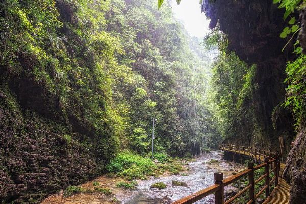张家界大峡谷峡谷间是一条清幽的小溪,沿溪边是用木板搭建的游道,张家界大峡谷峡谷内不仅有传统的秀美自然风光,还云集有三朝数代的历史人文景观。