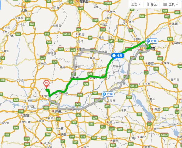 靠右前方行驶,进入郑焦晋高速,行驶36.7公里