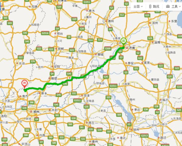 12.沿G4行驶17.6公里,直行进入原焦高速公路