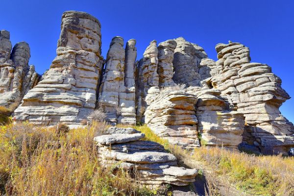 克什克腾石阵,原阿斯哈图石林景区,位于内蒙古自治区赤峰市克什克腾旗东北部,以第四纪冰臼群和花岗岩石林地貌,以及地质构造为主要特色,现为国家5A级旅游景区,高山耸立,奇石怪异的特点,让游客真正的体会到,大自然的鬼斧神工。