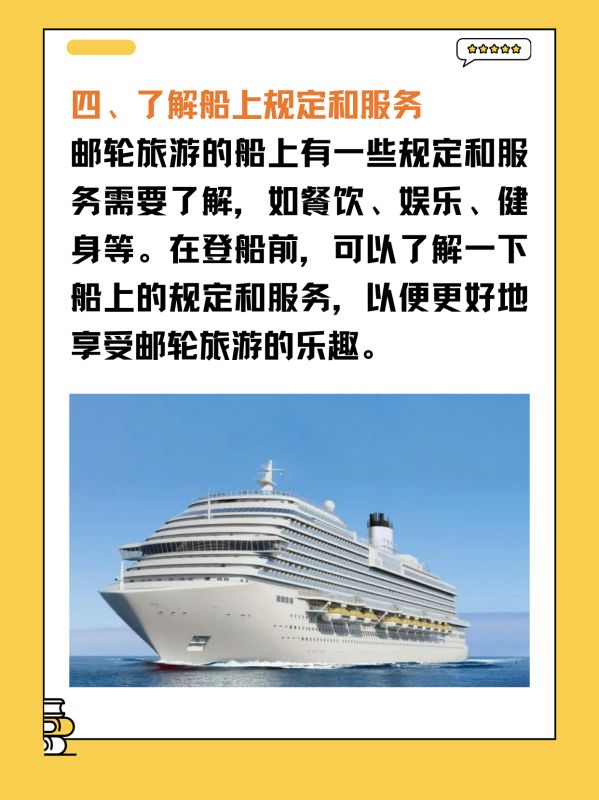 了解船上的规定和服务,以便更好地享受邮轮旅游的乐趣。
