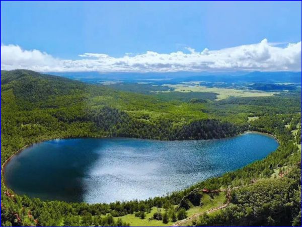 驼峰岭天池位于内蒙古阿尔山国家森林公园内,行政区域属内蒙古呼伦贝尔扎兰屯市,天池距兴安盟界700米,毗邻阿尔山市。海拔1228米,形成于距今约30万年前,湖面形似人脚,周围山峰形似驼峰,西南低洼处为其出水口,无入水口,以大气降水和泉水补给为主,景色奇美。