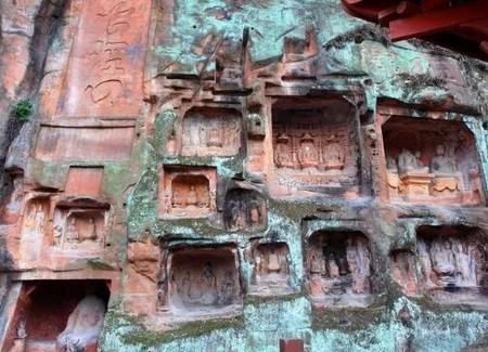 位于卧龙镇五一村卧龙山顶。造像凿于东西长5.5米,南北宽5.2米,高3.2米的长方体石墩四周壁上,东西北三面凿三大龛,南面为石造像,未凿龛。总共造像1000余尊,故名“千佛岩”。均为唐代开凿。东龛圆拱形,有造像9尊。西龛圆拱形,有造像53尊。北龛有造像19尊。南面无龛,但在长3.7米,宽2.15米的石壁上刻有高0.1米的小佛1000个(20排,每排50个),由于风化严重,只能看出大体轮廓。
