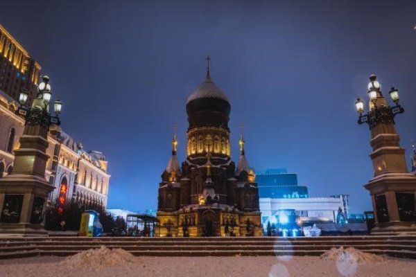 圣索菲亚大教堂是哈尔滨的地标性建筑,绿色的洋葱头式大穹顶十分引人注目。这座宏伟的拜占庭式建筑已不再具有教堂的功能,但是依然是代表哈尔滨的一张名片。