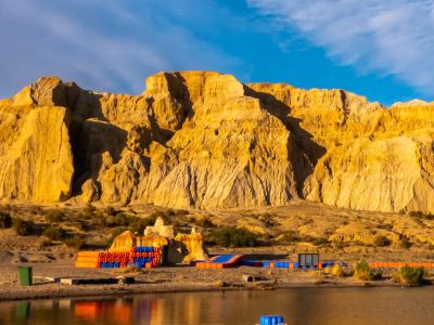 海上魔鬼城地处吉力湖东岸,乌伦古河入湖口处,俗称东河口。距离福海县城14公里。站在湖口东望,距湖岸百米处,遗存着一片亚丹地貌,呈南北走向,绵延十余里,坡体呈斗圆形。