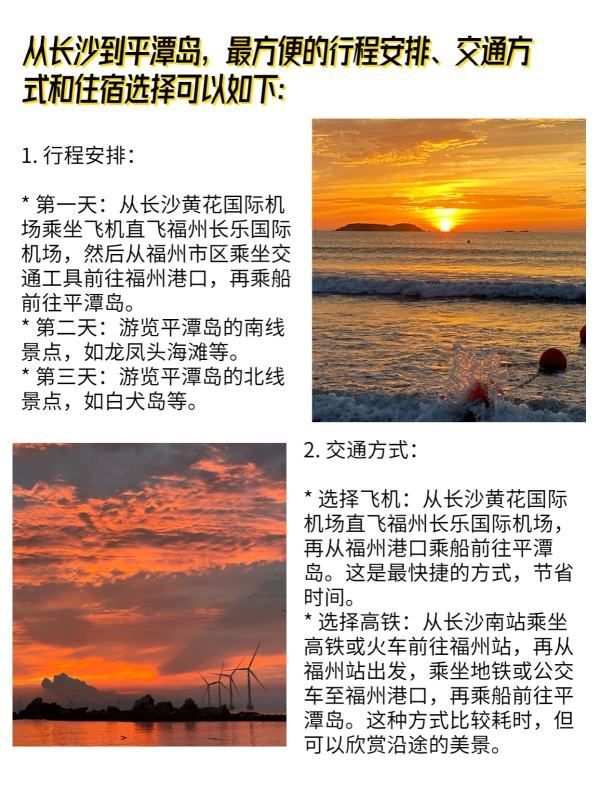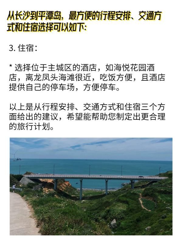 从长沙到平潭岛,最方便的行程安排、交通方式和住宿选择可以如下: