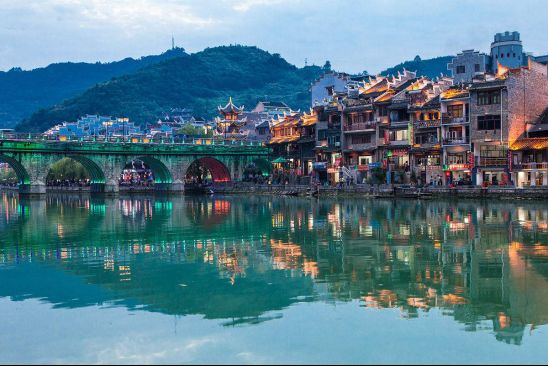 二、镇远古镇镇远古镇是贵州省黔东南苗族侗族自治州镇远县名镇,位于舞阳河畔,四周皆山。河水蜿蜒,以“S”形穿城而过,北岸为旧府城,南岸为旧卫城,远观颇似太极图。两城池皆为明代所建,现尚存部分城墙和城门。城内外古建筑、传统民居、历史码头数量颇多。镇远古镇交通方便区位优越,湘黔铁路、株六复线、320国道、沪昆高速公路穿境而过,距铜仁、湖南芷江和贵飞机场分别为90公里、170公里、270公里。