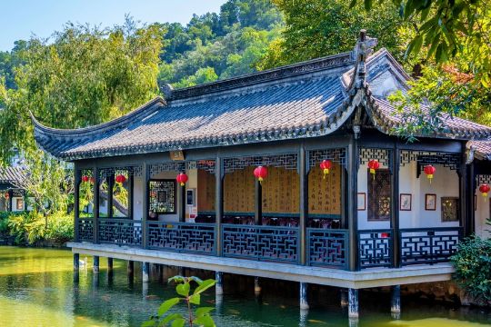 中山詹园,又名中山大宅门,国家AAAA级旅游景区,位于中山市南区北台村,105国道旁。景区分为詹园祝寿、歧江廊桥、詹府种福三个区域;建筑以苏杭园林为基调,综合中国古典园林之精髓,强调岭南水乡的布局脉络,结构简洁而凝重,风格古朴而洒脱。