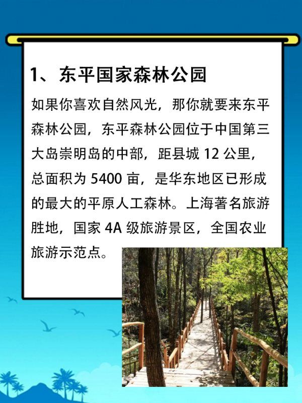 崇明森林公园:公园内有丰富的植被和清新的空气,是进行森林浴、徒步和骑行的好去处。