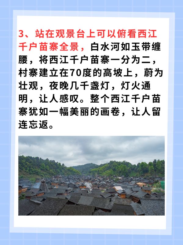 总之,去西江千户苗寨旅行是一次非常有意义的文化体验之旅。只要你提前做好准备,尊重当地文化,注意个人安全,就一定能留下难忘的回忆。