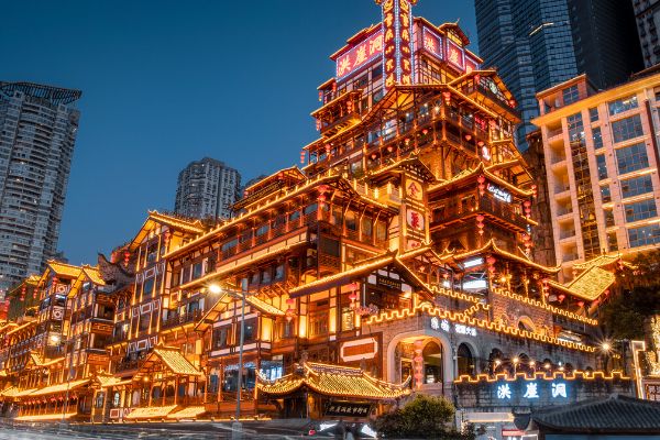 重庆旅游,推荐游玩洪崖洞、李子坝、长江索道、磁器口、湖广会馆。