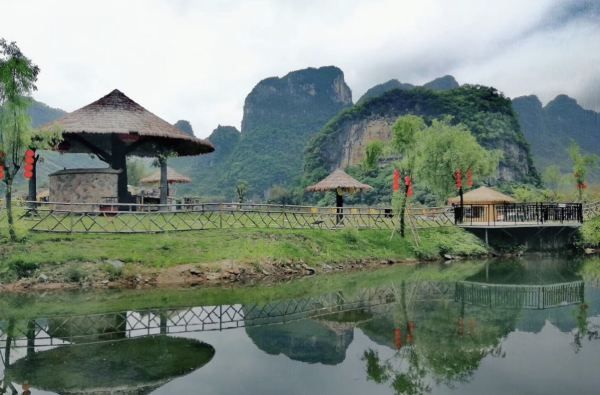 7、黄姚诗画姚江景区:黄姚诗画姚江景区青山绿水,田园风光,四季如画,鬼斧神工的喀斯特地貌美景、如诗如画般的山水意境令人向往。尤以“饮水牛山”、“猴子吃桃山”、“骆驼山”、“七彩圣旨山”、“如来神脚山”和“孔子教书山”等众多鬼斧神工的“奇”山而知名。乘坐竹筏,漫游于姚江上欣赏大自然鬼斧神工之山水美景。