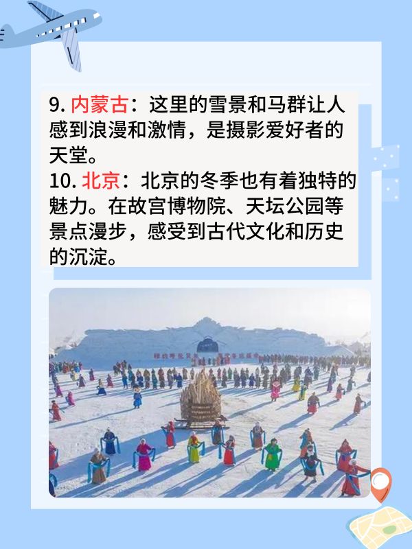1. 哈尔滨:感受到浓郁的冬季氛围。