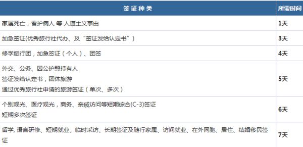 以下是在正常情况下,韩国大使馆的各类型韩国签证办理时间表: