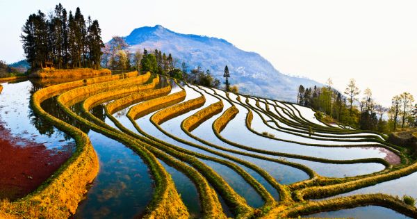 元阳梯田在2013年被列入了世界遗产名录,和菲律宾的巴纳韦梯田、瑞士拉沃梯田并称为世界三大梯田。