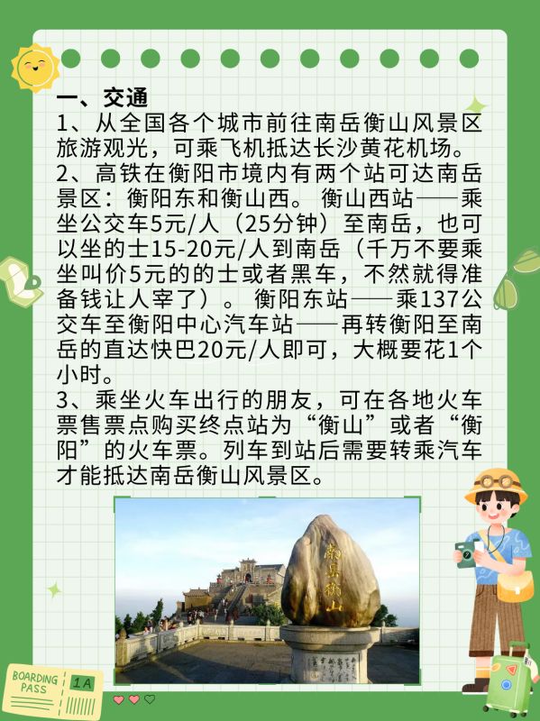 总之,南岳衡山是一个集自然美景和人文历史于一体的旅游胜地,合理安排行程,可以让你的旅行体验更加丰富和愉快。