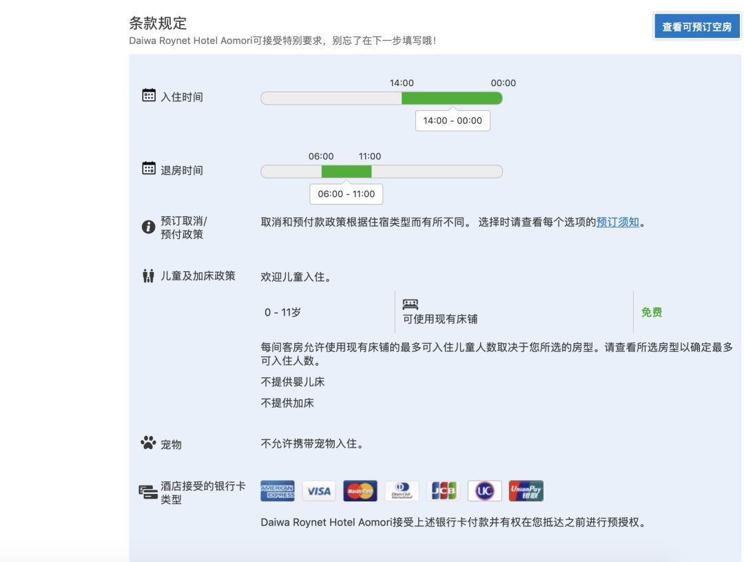 有些酒店可能会有特殊的条款规定,大家预订的时候仔细看清楚就好,避免不必要的麻烦。